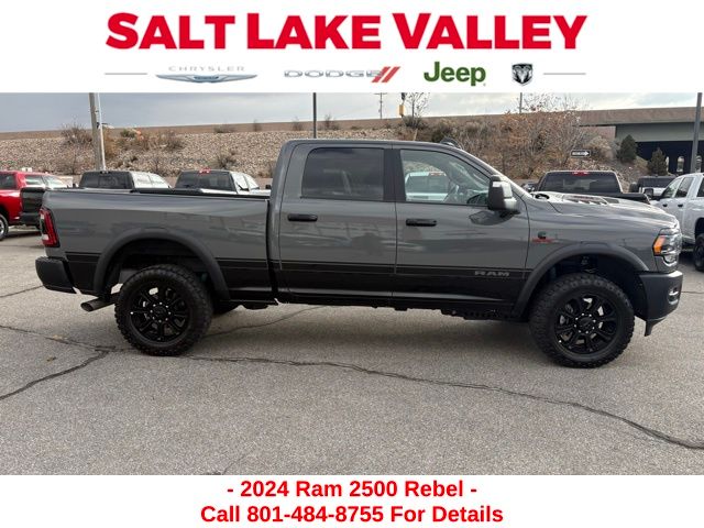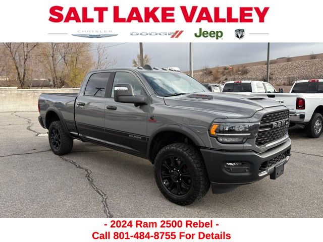 Get ready to hit the road in this Ram 2500, a standout choice for drivers looking for reliability, performance, and style! This impressive vehicle is packed with premium features designed to make every drive more enjoyable. Plus, youâll enjoy a $1,000 finance savings, already included in the sale price, when you finance through one of our trusted lending partners. Whether youâre searching for used cars in Salt Lake City, a dependable SUV, or a powerful truck, this Ram 2500 delivers everything you need and more. Visit Salt Lake Valley Chrysler Dodge Jeep Ram today to test drive or explore our entire selection of quality pre-owned vehicles. Donât wait - shop online at www.slvcdjr.com or call 801-484-8755 to learn more! This amazing vehicle comes loaded with options like Level 2 Equipment Group (12" Touchscreen Display, 17 Speaker harman/kardon Premium Sound, 2nd Row In Floor Storage Bins, 4G LTE Wi-Fi Hot Spot, Alexa Built-In, Aluminum Litho Instrument Panel Bezels w/Blk Trim, Apple CarPlay, Auto Adjust In Reverse Exterior Mirrors, Auto Dim Exterior Mirror, Auto High Beam Headlamp Control, Auto Power-Folding Mirrors, Auto-Dimming Exterior Passenger Mirror, Bi-Function LED Projector Headlamps, Black Exterior Mirrors, Black Rotary Shifter w/Silver Stripe, Body Color Door Handles, Connected Travel & Traffic Services, Connectivity - US/Canada, Disassociated Touchscreen Display, Electric Shift-On-The-Fly Transfer Case, Exterior Mirrors Courtesy Lamps, Exterior Mirrors w/Heating Element, Exterior Mirrors w/Memory, Exterior Mirrors w/Supplemental Signals, For Details, Visit DriveUconnect.com, For More Info, Call 800-643-2112, Forward & Reverse Utility Lights, Front Door Accent Lighting, Global Telematics Box Module (TBM), Google Android Auto, GPS Antenna Input, GPS Navigation, HD Radio, Integrated Voice Command w/Bluetooth, Leather Wrapped Grab Handle, LED Dome Lamp w/On/Off Switch, LED Interior Lighting, Luxury Door Trim Panel (CTH), Mirror Running Lights, MOPAR Front & Rear Rubber Floor Mats, Off-Road Information Pages, Overhead LED Lamps, Power Adjust Mirrors, Power Adjustable Convex Aux Mirrors, Power Adjustable Pedals w/Memory, Power Heated Fold Telescopic Mirrors w/Memory, Power Telescoping Mirrors, Premium Overhead Console, Radio: Uconnect 5 Nav w/12.0" Display, Rain Sensitive Windshield Wipers, Rear Door Accent Lighting, Rear Power Sliding Window, Rear Window Defroster, Remote Proximity Keyless Entry, Security Alarm, Selectable Tire Fill Alert, SiriusXM Radio Service, SiriusXM w/360L, Sport Performance Hood, Sun Visors w/Illuminated Vanity Mirrors, Trailer Tow Pages, and Universal Garage Door Opener), Lunar Edition (Accent Color Door Handles, Accent Color Exterior Badging, Black Wheel Center Hub, Blue Interior Accent Stitching, Body Color Grille Surround, Gloss Black Nostrils/MIC Black Grille, MOPAR Lunar Edition Decal, and Ramcharger Wireless Charging Pad), Quick Order Package 2HR Rebel (220 Amp Alternator, 4x4 Badge, Conventional Differential Front Axle, Instrument Cluster Theme 2 - Rebel, Limited Slip Rear Differential w/Electronic Lock, Painted Semi-Texture Film Instrument Panel Bezels, Rebel Badge, Rebel Instrument Panel Badge, and Rebel Suspension), Towing Technology Group (Blind Spot & Cross Path Detection, CTR Stop Lamp w/Cargo View Camera, Surround View Camera System, and Trailer Reverse Guidance), 2 Way Rear Headrest Seat, 3.73 Axle Ratio, 4 Way Front Headrests, 4-Wheel Disc Brakes, 40/20/40 Split Bench Seat, 6 Speakers, ABS brakes, Active Noise Control System, Adjustable pedals, Air Conditioning, Alloy wheels, AM/FM radio: SiriusXM with 360L, Apple CarPlay/Android Auto, Auto-dimming Rear-View mirror, Automatic temperature control, Block heater, Brake assist, Cloth Heated Power Bench Seat (DISC), Compass, Delay-off headlights, Driver door bin, Dual front impact airbags, Dual front side impact airbags, Electronic Stability Control, Electronically Controlled Throttle, Folding Flat Load Floor Storage, Front anti-ro