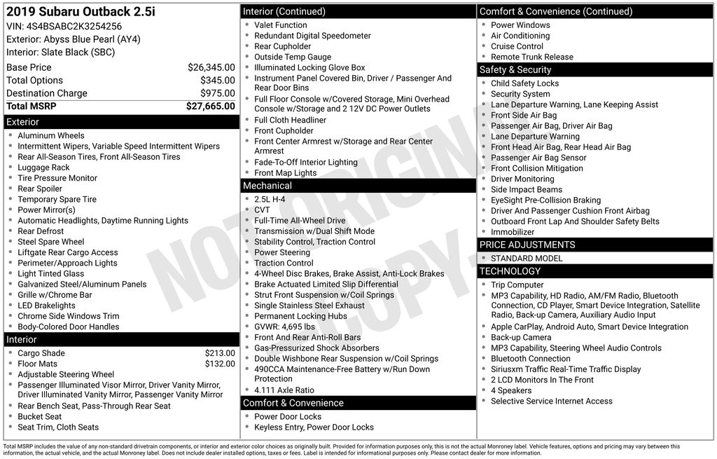 2019 Subaru Outback 2.5i