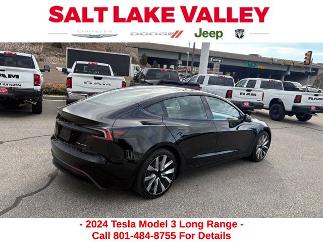 Get ready to hit the road in this Tesla Model 3, a standout choice for drivers looking for reliability, performance, and style! This impressive vehicle is packed with premium features designed to make every drive more enjoyable. Plus, youâll enjoy a $1,000 finance savings, already included in the sale price, when you finance through one of our trusted lending partners. Whether youâre searching for used cars in Salt Lake City, a dependable SUV, or a powerful truck, this Tesla Model 3 delivers everything you need and more. Visit Salt Lake Valley Chrysler Dodge Jeep Ram today to test drive or explore our entire selection of quality pre-owned vehicles. Donât wait - shop online at www.slvcdjr.com or call 801-484-8755 to learn more! This amazing vehicle comes loaded with options like 17 Speakers, 4-Wheel Disc Brakes, ABS brakes, Air Conditioning, Alloy wheels, Audio memory, Auto High-beam Headlights, Auto-dimming door mirrors, Auto-dimming Rear-View mirror, Automatic temperature control, Brake assist, Bumpers: body-color, Compass, Delay-off headlights, Driver door bin, Driver vanity mirror, Dual front impact airbags, Dual front side impact airbags, Electronic Stability Control, Emergency communication system, Exterior Parking Camera Rear, Four wheel independent suspension, Front anti-roll bar, Front Bucket Seats, Front Center Armrest w/Storage, Front dual zone A/C, Front reading lights, Fully automatic headlights, Heated & Ventilated Front Bucket Seats, Heated door mirrors, Heated front seats, Heated rear seats, Heated steering wheel, HVAC memory, Illuminated entry, Knee airbag, Lane Departure Warning System, Low tire pressure warning, Memory seat, Navigation System, Occupant sensing airbag, Outside temperature display, Overhead airbag, Passenger door bin, Passenger vanity mirror, Power door mirrors, Power driver seat, Power passenger seat, Power steering, Power windows, Premium Audio System, Radio data system, Rain sensing wipers, Rear air conditioning, Rear audio controls, Rear reading lights, Rear seat center armrest, Rear window defroster, Security system, Speed control, Speed-sensing steering, Split folding rear seat, Steering wheel memory, Steering wheel mounted A/C controls, Steering wheel mounted audio controls, Telescoping steering wheel, Tilt steering wheel, Traction control, Trip computer, Variably intermittent wipers, Vegan Leather Seat Trim, Ventilated front seats, and Wheels: 18" x 8.5" Photon, making it the perfect choice for your next adventure.