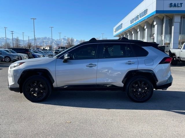 Turn every drive into something special with this Toyota RAV4 Hybrid from Salt Lake Valley Chevrolet! Designed for comfort, performance, and style, this vehicle comes fully equipped with modern technology and convenience features youâll love. Plus, enjoy a $1,000 finance savings, already included in the sale price, when you finance through one of our trusted lending partners. If youâre shopping for used cars in Salt Lake City, or searching for the perfect SUV, truck, or sedan, this Toyota RAV4 Hybrid delivers the dependability and value youâre looking for. Itâs the ideal match for your lifestyle - ready for everything from mountain adventures to city commutes. Visit Salt Lake Valley Chevrolet today and see why so many Utah drivers trust us for great deals on quality pre-owned vehicles. Explore our inventory online at www.slvchevy.com or call 801-969-8221 to schedule your test drive today! This impressive vehicle includes 4-Wheel Disc Brakes, 6 Speakers, ABS brakes, Air Conditioning, Alloy wheels, AM/FM radio: SiriusXM, Auto High-beam Headlights, Auto-dimming Rear-View mirror, Automatic temperature control, Axle Ratio: TBD, Brake assist, Bumpers: body-color, Delay-off headlights, Driver door bin, Driver vanity mirror, Dual front impact airbags, Dual front side impact airbags, Electronic Stability Control, Emergency communication system: Safety Connect (1-year trial), Four wheel independent suspension, Front anti-roll bar, Front Bucket Seats, Front Center Armrest, Front dual zone A/C, Front reading lights, Fully automatic headlights, Garage door transmitter: HomeLink, Heated door mirrors, Heated Front Seats, Heated front seats, Illuminated entry, Knee airbag, Lane Departure Warning System, Leather Shift Knob, Low tire pressure warning, Occupant sensing airbag, Outside temperature display, Overhead airbag, Overhead console, Panic alarm, Passenger door bin, Passenger vanity mirror, Power door mirrors, Power driver seat, Power Liftgate, Power moonroof, Power steering, Power windows, Radio data system, Radio: AM/FM/XM Audio System, Rear anti-roll bar, Rear seat center armrest, Rear window defroster, Rear window wiper, Remote keyless entry, Security system, SofTex Seat Trim, Speed control, Speed-sensing steering, Split folding rear seat, Spoiler, Steering wheel mounted audio controls, Telescoping steering wheel, Tilt steering wheel, Traction control, Trip computer, Turn signal indicator mirrors, Variably intermittent wipers, and Wheels: 18 x 7.0J Black-Painted Aluminum Alloy, offering everything you need for your next adventure.
